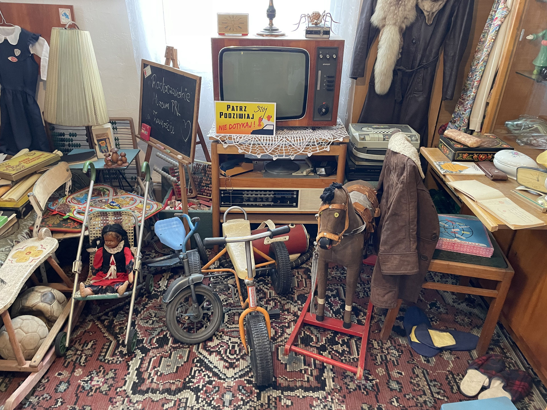 One of the most unexpected highlights was the Roztoczańskie Muzeum PRL in Zamość. Stepping inside felt like traveling back in time, into a world of faded posters, rotary phones, and everyday objects from a different era. The museum, housed in a former residential building, recreated life in the Polish People’s Republic with incredible detail—rooms styled from the 70s and 80s, a replica of a Pewex store, and even a Milicja (citizen’s militia) office. The nostalgia was real, but so was the curiosity, as we explored the exhibits and listened to the voice of legendary narrator Tomasz Knapik guiding us through history.