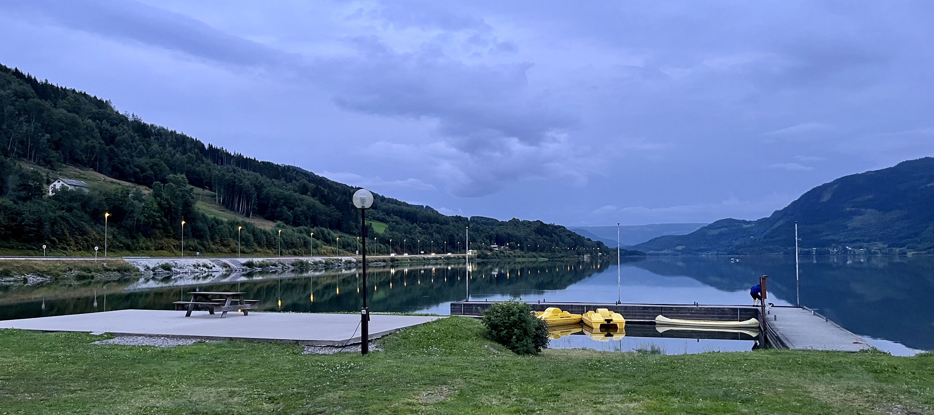 After exploring the farm, we continued to Lillehammer Camping, a peaceful retreat located on the banks of Lake Mjøsa, Norway’s largest lake. The campsite provided a perfect setting to unwind, with stunning waterfront views and a private beach for swimming. As the sun set over the lake, we reflected on the incredible experiences of the day, appreciating the balance between adventure and relaxation.