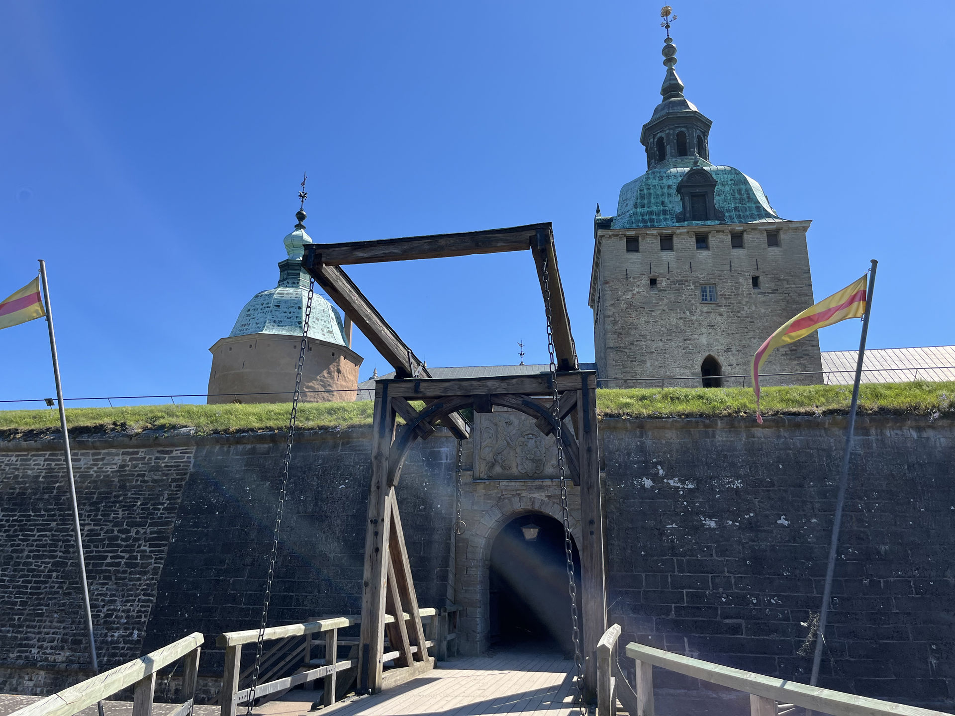 Our journey led us to the magnificent Kalmar Castle, a fortress with over 800 years of history. Once known as ‘the key to the kingdom,’ this Renaissance castle has witnessed royal banquets, fierce battles, and even ghostly legends. Walking through its grand halls, deep dungeons, and secret passageways, we felt the weight of history surrounding us. The castle’s golden ceilings contrast sharply with the cannonball-marked walls, telling stories of both elegance and war.