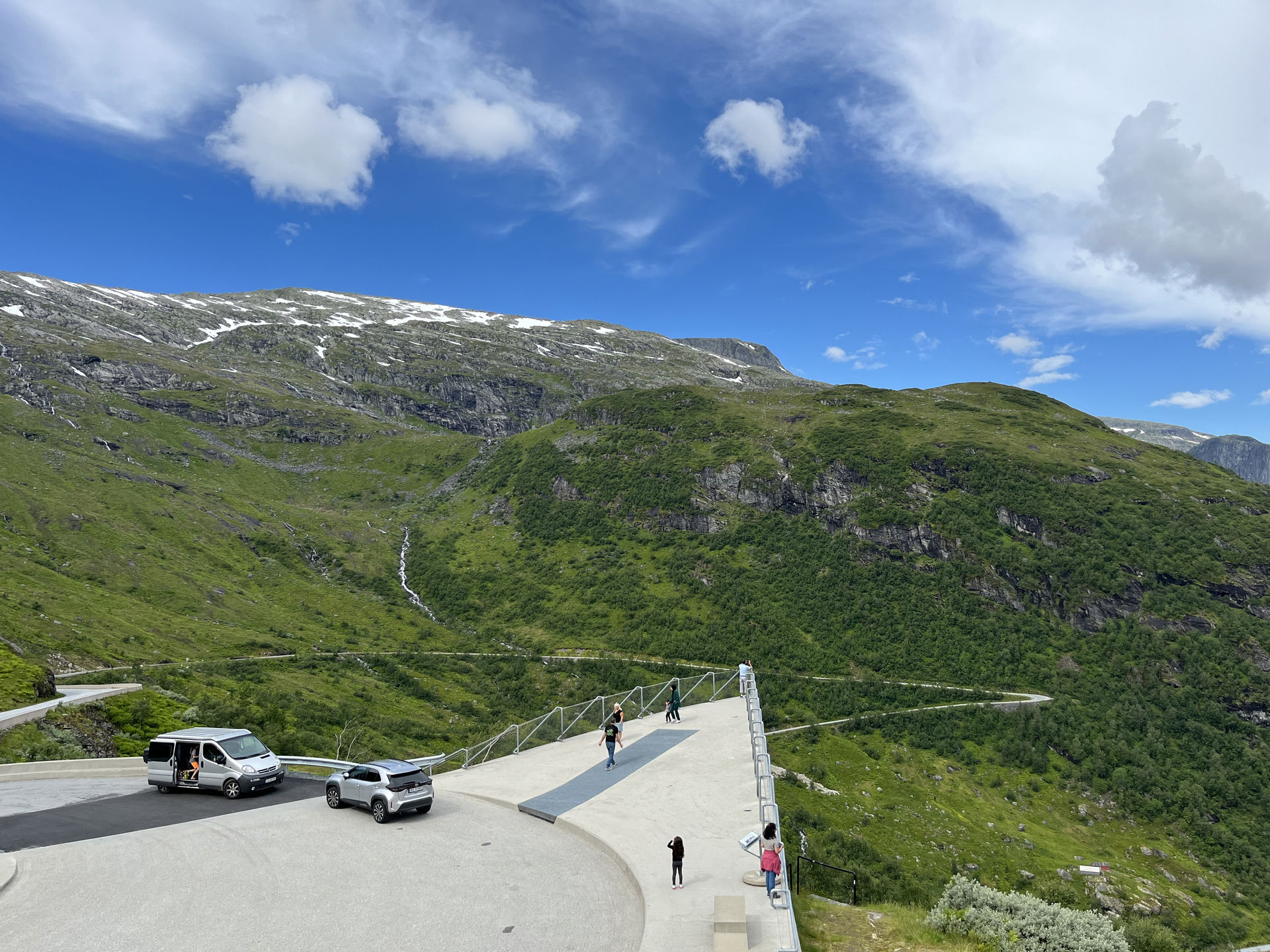 Driving along the scenic route, we encountered breathtaking viewpoints, including the famous Utsikten, where the road twists dramatically up the mountainside, offering panoramic views of the lush valleys below. The contrast between the serene fjords and the rugged mountain terrain made every stop a moment to remember.