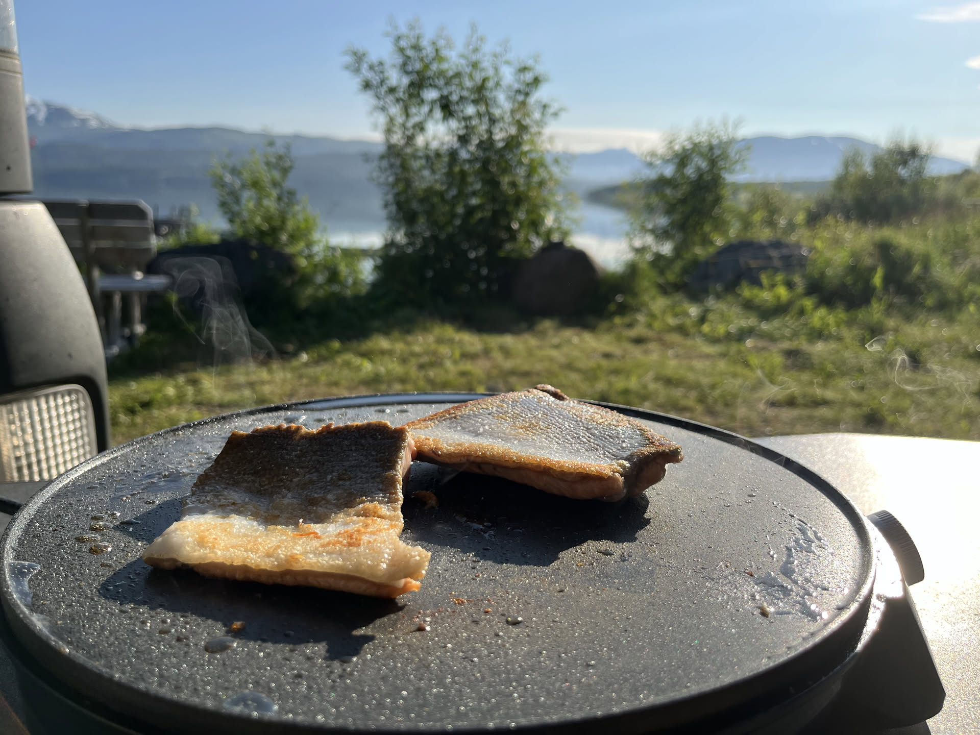 He even treated us to a taste of freshly caught wild salmon. It was the most delicious fish I’ve ever eaten! Maybe it was the stunning view from the frying pan, maybe the crystal-clear water and wild nature surrounding us. Either way, it was unforgettable.