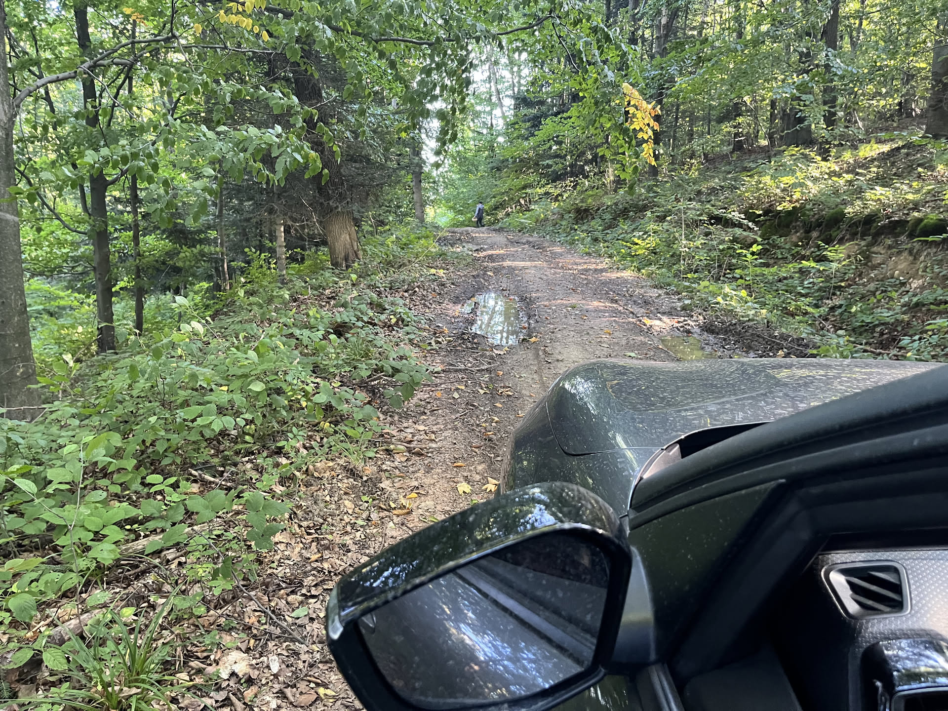 Later, we discovered a newly built viewing tower on Łysula, complete with a slide spiraling down from the top. Even I couldn’t resist the thrill—though my sons raced up and down like mountain goats. The road we chose to reach it turned out to be a muddy off-road adventure. Our car got a proper coat of dirt, but the laughter and adrenaline made it all worthwhile.