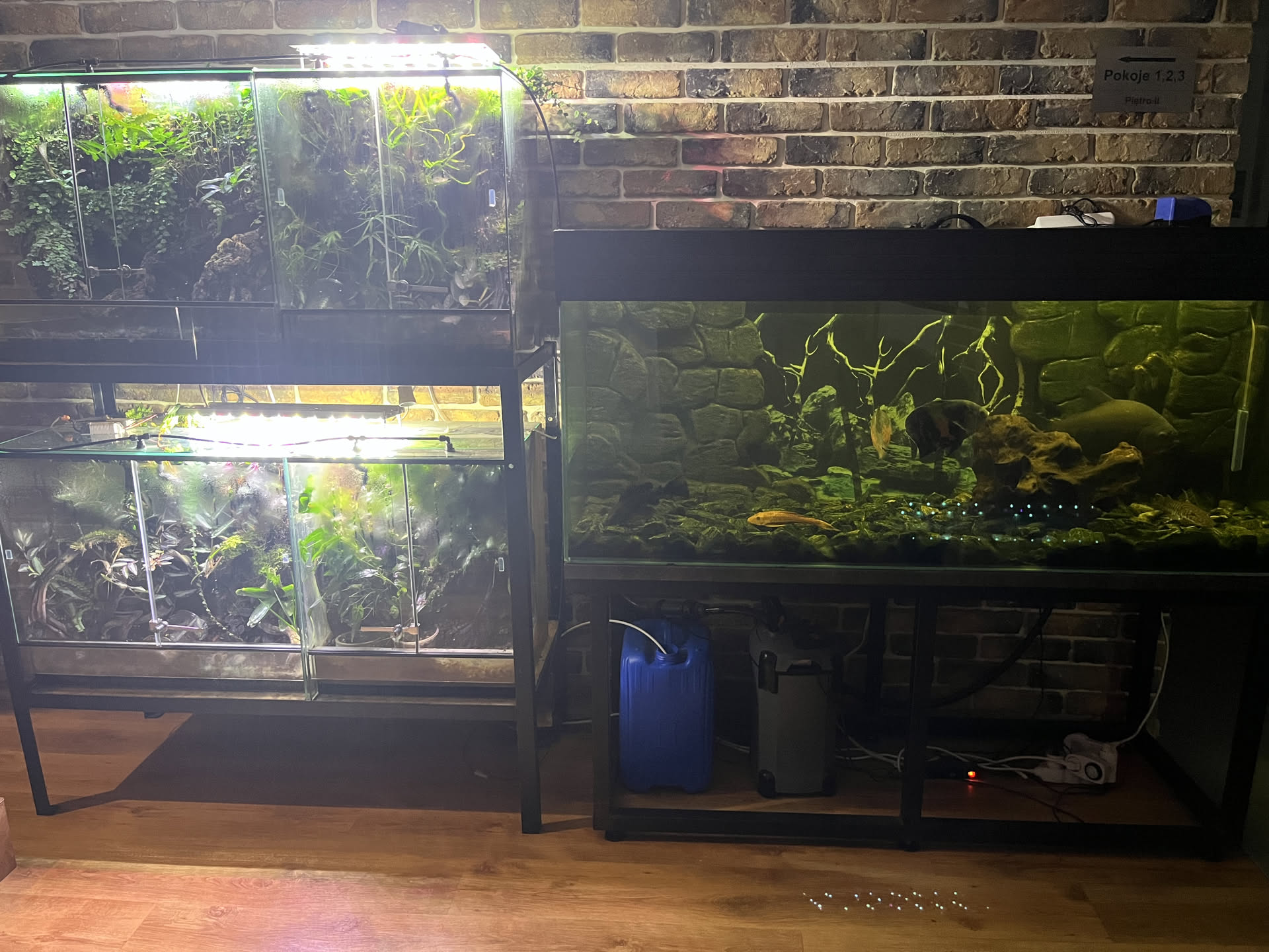 Since we left late, we decided to spend the night near Częstochowa at a charming spot called Jurajskie Manowce. Nestled in the Polish Jura, this place surprised us with its sanctuary for exotic animals rescued from various hardships. Turtles, frogs, fish, and lizards greeted us from their enclosures, each with a story of survival and care.
